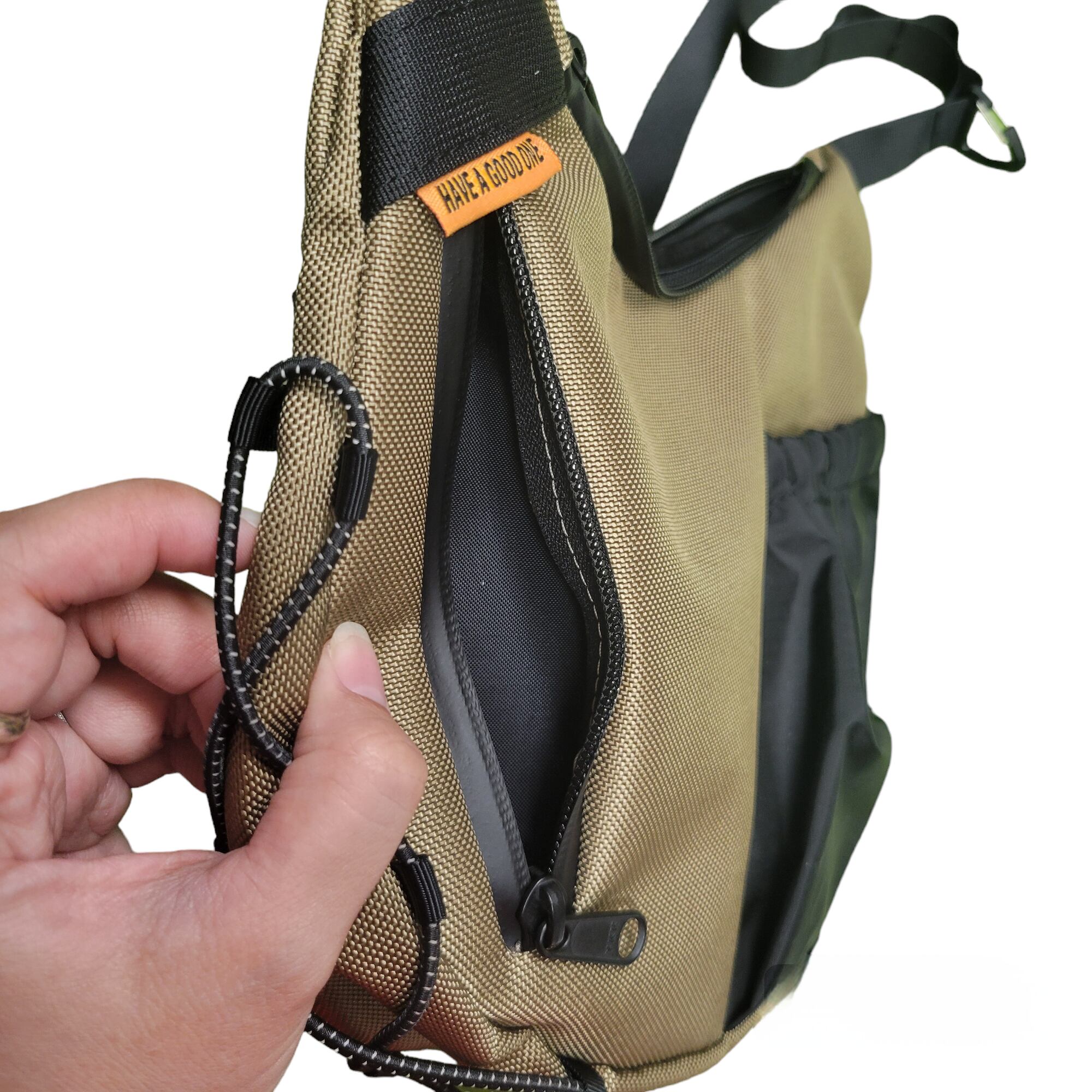 取り外し可能な三点止めができるショルダーバッグ